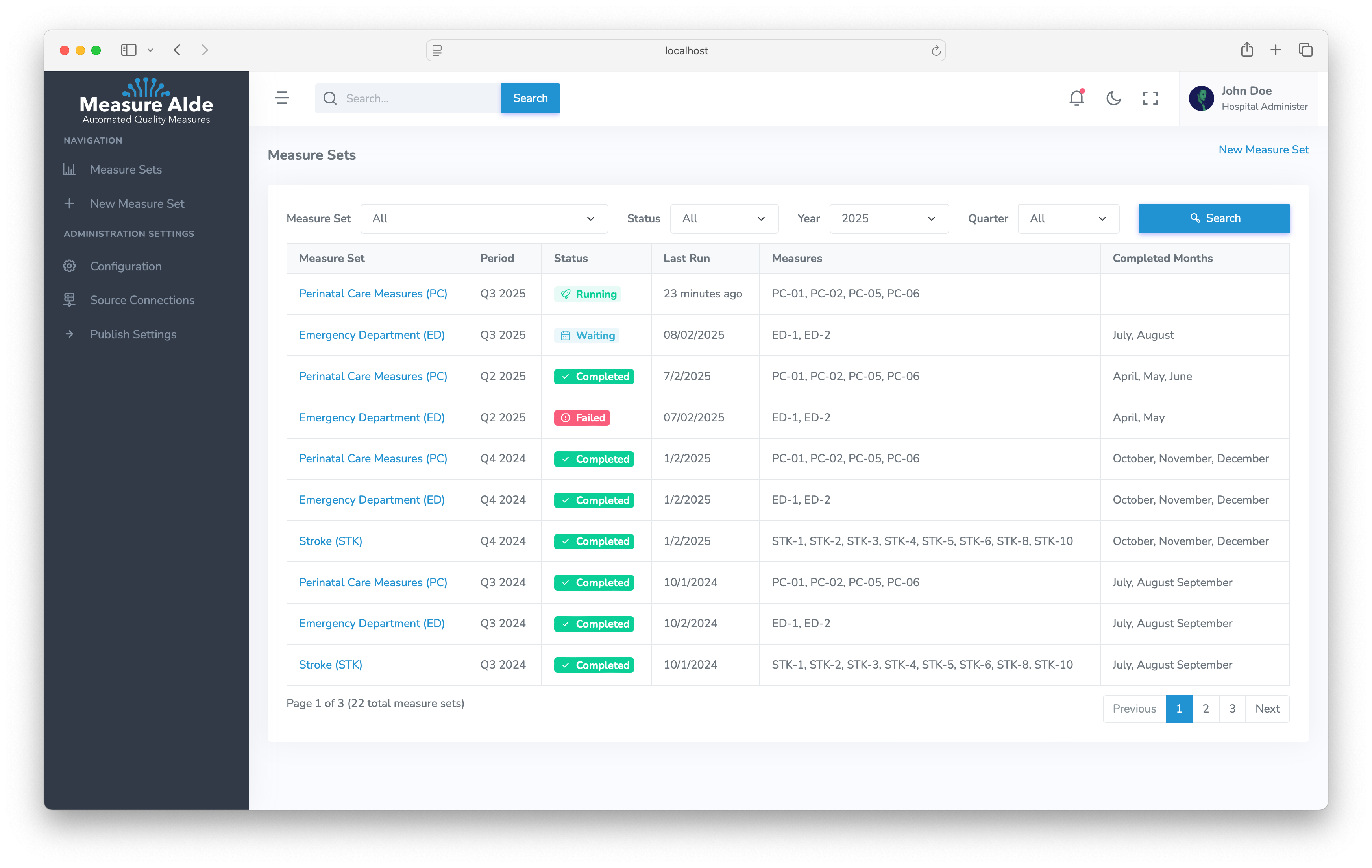 Measure sets are a group of related measures such as PC or ED. Measure AIde will provide a way to calculate entire measure sets for a given time window (ex. quarter) and track the progress and results.